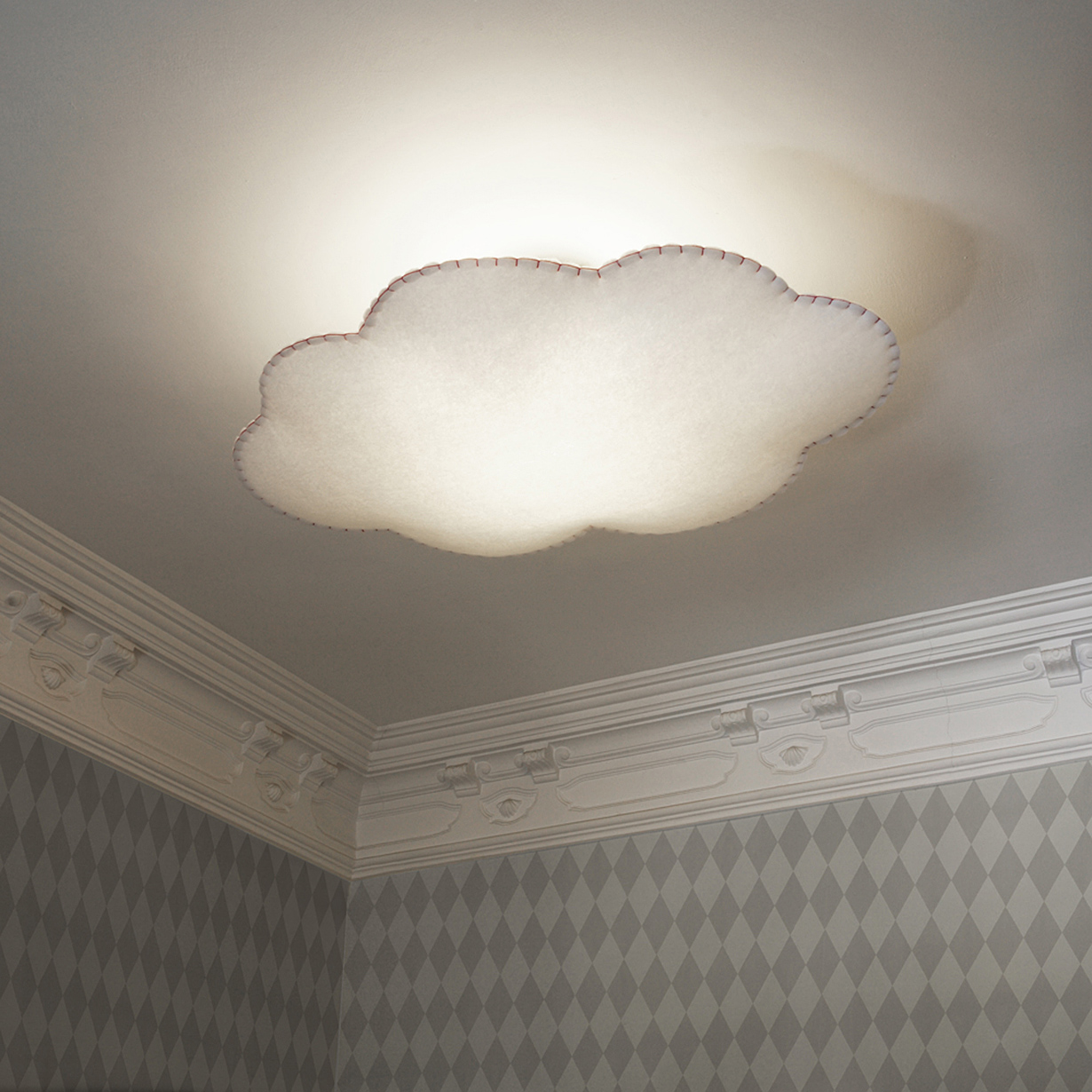 Il paralume a sospensione nuvola può essere utilizzato come paralume diffusore posizionato sotto una fonte di luce o semplicemente come elemento decorativo appeso al soffitto ovunque.