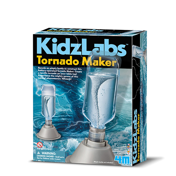 Riciclate una bottiglia vuota per costruire questa piccola machina a batterie che riproduce un Tornado. Create un tornado formidabile sul vostro tavolo! Provate la grande potenza di questo fenomeno naturale.